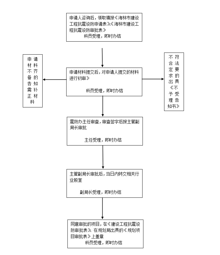 工信局行政权利统计表 序号 行政权利 名 称 种类 依据 及标准 公开 方式 公开 范围 受理 条件 受理 时限 流程图 1 建设工程 抗震设防 审批 黑龙江省防震减灾条例 条例 图板 全社会 2天 2 电力设施保护区内施工审批 审批 黑龙江省电力设施保护条例 图板 全社会 15天 3 不使用政府性资金的项目核准、备案 其他 黑政发[2006]17号 图板 内部 3天 4 市科技计划项目确认 确认 黑龙江省科技进步条例 网上 全社会 2天 5 技术合同认定登记 确认 技术合同认定登记管理办法 网上 全社会 2天 填表说明: 1.“行政权利名称”栏目中依次填写本单位、本部门的具体行政权利名称; 2..“种类”栏目中填写“行政许可、审批、处罚、征收、收费、强制、确认、救济、给付、裁决、检查、确认、考核、其他权利或内部管理权利”等; 3.“依据”栏目中填写具体的法律、法规、规章的文本名称、文号或发布日期等; 4.“公开方式”栏目中填写“图版或网上公开”等; 5.“公开范围”栏目中填写“内部公开或全社会”等; 6.“流程图”栏目中,为对应的每一项具体行政权利编制相应的流程图。在流程图中还需标明需要提交的全部材料的目录、标准文本以及管理相对人依法享有的各项权利。流程图可作为附件,依次后附于表格之后。 工信局行政执法人员信息统计表 序号 姓名 所在单位名称 执法证编号 执法权限 备注 1 张春才 工信局 03070595 地震行政管理 2 周 强 工信局 03070598 地震行政管理 3 田玉权 工信局 03070596 地震行政管理 4 张 丹 工信局 03070597 地震行政管理